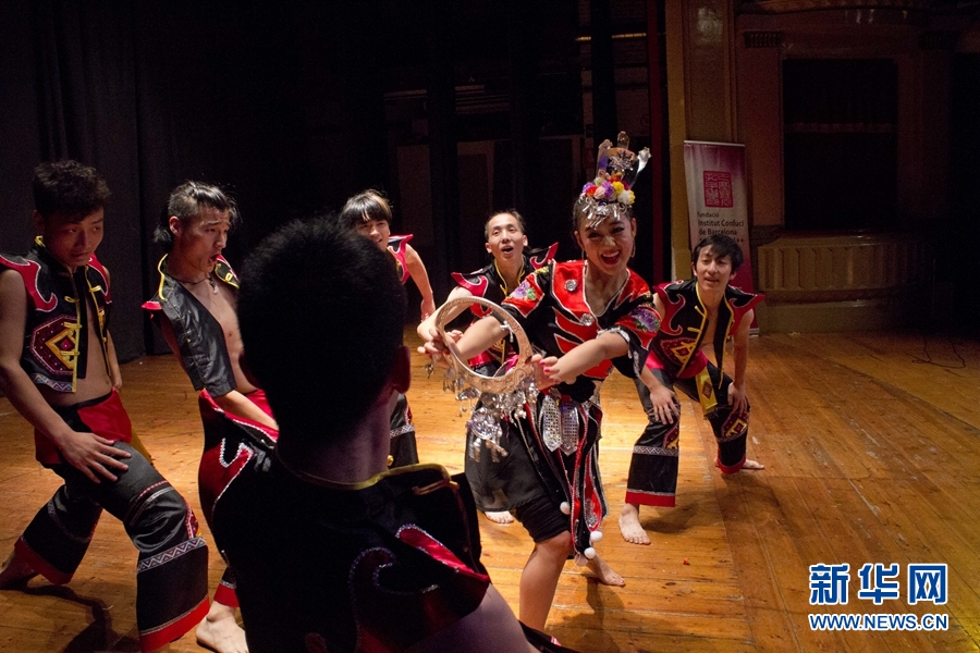 來自中南民族大學的演員在臺上表演。新華網發 Xesco攝
