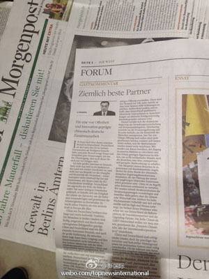 ????新華網北京10月10日電 據新華社“新國際”微博報道,克強總理當地時間9日抵達德國柏林,踏上了上任后對德國的第二次正式訪問。置身于柏林的大街小巷,記者時時處處能感受到對中國總理到訪的熱情歡迎和殷殷期待。