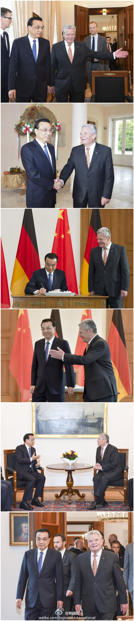 ????新華網(wǎng)北京10月10日電 據(jù)新華社“新國際”微博報道,10月10日上午,國務(wù)院總理李克強在柏林會見德國總統(tǒng)高克。李克強說,在中德雙方的共同努力下,兩國合作的深度和廣度達到前所未有的水平。中方愿同德方一道,充分理解對方國情,筑牢中德友好的基石,開辟兩國全方位戰(zhàn)略伙伴關(guān)系更加美好的前景。