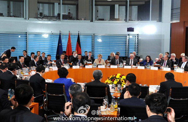 ????新華網(wǎng)北京10月10日電 據(jù)新華社“新國際”微博報道,“Happy Birthday!”在第三輪中德政府磋商會上,德國總理默克爾開場先向中方農(nóng)業(yè)部長祝福生日!她說:雖然你不能和家人一起過,但我們會讓你過個愉快的生日。李克強(qiáng)總理提議大家舉水杯為這特別的生日送上祝福,還風(fēng)趣地說祝福農(nóng)業(yè)部長,意味著有保障糧食安全的基礎(chǔ)。