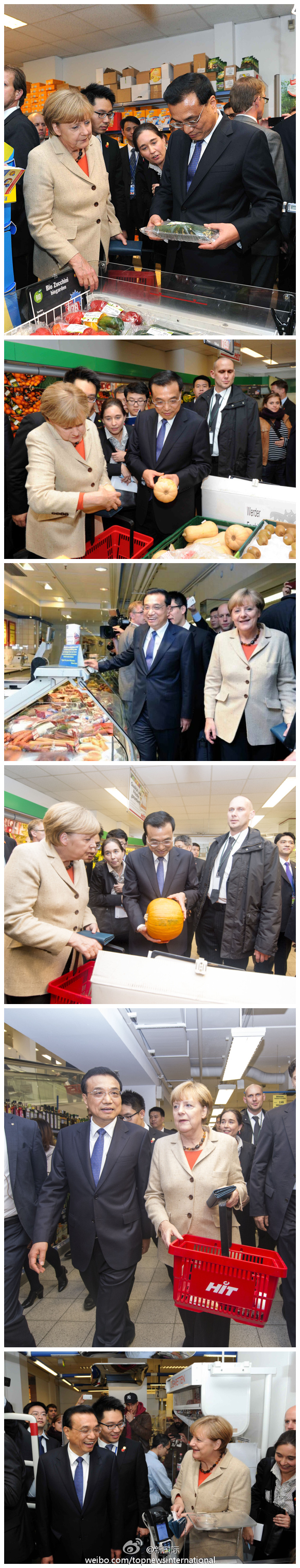 ????新華網(wǎng)北京10月11日電 據(jù)新華社“新國際”微博報(bào)道,10日下午,中德總理結(jié)束政府磋商后,李克強(qiáng)、默克爾臨時(shí)光顧了柏林一家超市。默克爾饒有興致地向李克強(qiáng)介紹超市里的產(chǎn)品,還向他推薦了一款可以寄給家人的明信片,并作為禮物送給李克強(qiáng)。兩位總理的到來吸引了眾多顧客駐足,紛紛上前與中德總理握手問候。