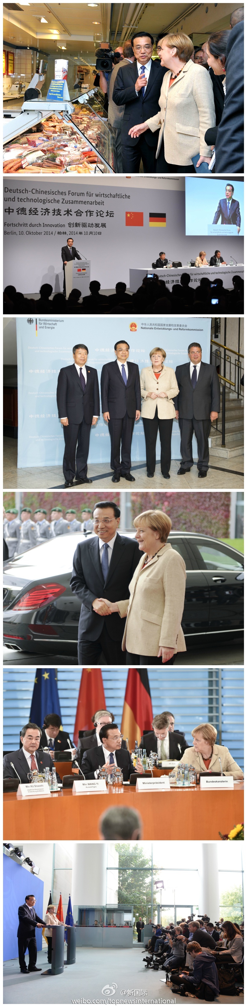 ??? 新華網(wǎng)北京10月11日電? 據(jù)新華社“新國際”微博報道,10日,李克強對德國訪問日程異常繁忙。兩國總理共同主持了規(guī)模空前的第三輪中德政府磋商,出席了中德經(jīng)濟技術(shù)論壇、簽字儀式,共見記者,參觀皇家瓷器廠……當(dāng)天默克爾同李總理一起出席了12場活動,長達(dá)10個小時的深度會晤,共同規(guī)劃中德務(wù)實合作升級版。