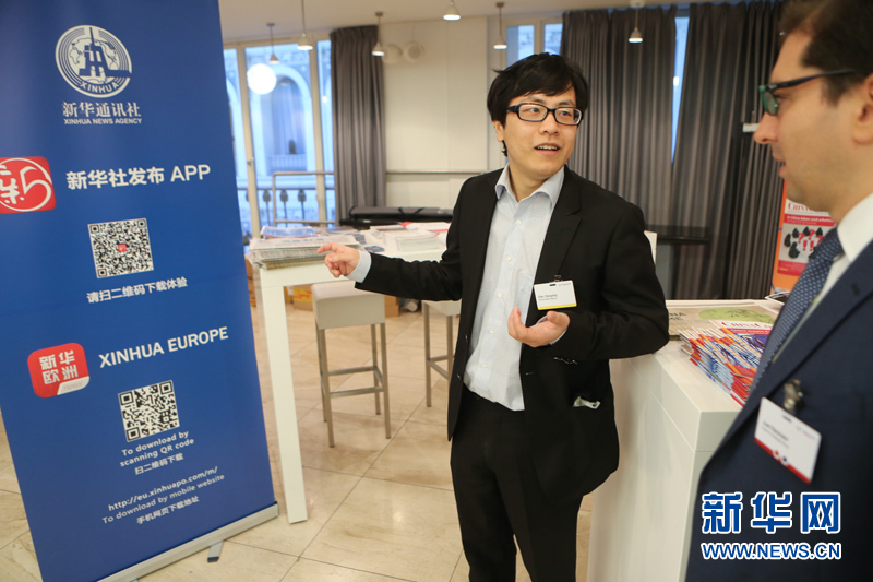 ??? 10月11日,在德國漢堡舉行的中歐論壇漢堡峰會上,作為此次峰會的媒體合作伙伴,新華社的工作人員在會議現場推介新華社發布和歐洲發布APP。中歐論壇漢堡峰會第六屆會議11日在德國漢堡閉幕。本屆峰會以“中國與歐洲相遇”為主題。來自中歐政治、經濟和學術界的500多位代表聚集在一起,探討中歐經貿合作未來趨勢、中國經濟的綠色發展等重要議題。新華社記者張帆攝