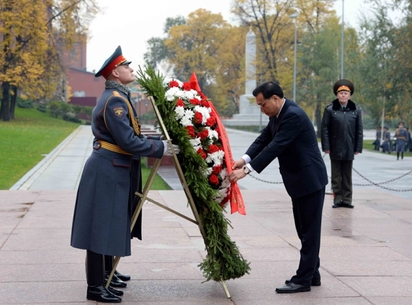 ??? 俄方為李克強總理安排的第一場正式活動就是向克里姆林宮外的無名烈士墓獻花圈,意涵豐富深刻。