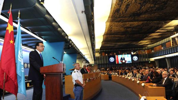 10月15日,中國國務院總理李克強在格拉齊亞諾總干事的陪同下在位于羅馬的聯(lián)合國糧農(nóng)組織總部發(fā)表演講。 新華社 圖
