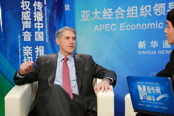 ????新華網(wǎng)北京11月11日電(記者 向博)美國卡特彼勒公司總裁芮德華9日在出席亞太經(jīng)合組織(APEC)工商領(lǐng)導(dǎo)人峰會期間接受新華網(wǎng)記者專訪,暢談基礎(chǔ)建設(shè)和工程機械行業(yè)在亞太地區(qū)的發(fā)展以及中國市場布局等話題。