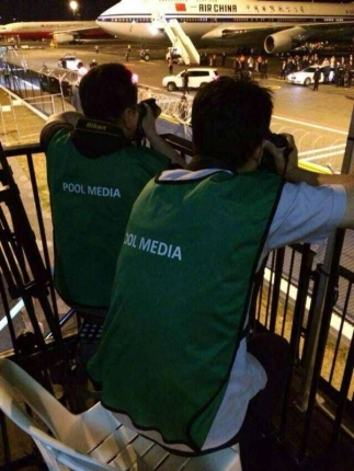 ??? 習近平主席的專機,降落在布里斯班,已經是當地時間14日晚上9點50左右,話說布里斯班白天驕陽灼人,太陽一落山氣溫蹭蹭下降,等候專機抵達的記者要是沒加件外套,就只能挨凍啦!