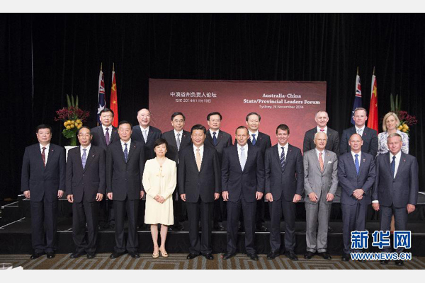 ????新華網悉尼11月19日電(記者魏建華 張小軍)國家主席習近平19日在悉尼與澳大利亞總理阿博特共同出席首屆中澳省州負責人論壇。