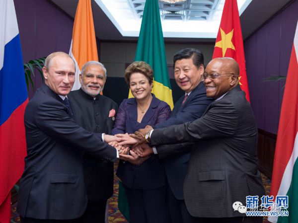????——金磚國(guó)家領(lǐng)導(dǎo)人非正式會(huì)晤一致同意要加強(qiáng)全方位合作,落實(shí)好巴西福塔萊薩會(huì)晤成果,加快推進(jìn)金磚國(guó)家開(kāi)發(fā)銀行和應(yīng)急儲(chǔ)備安排有關(guān)建設(shè)進(jìn)程,密切溝通和協(xié)調(diào),維護(hù)共同利益。