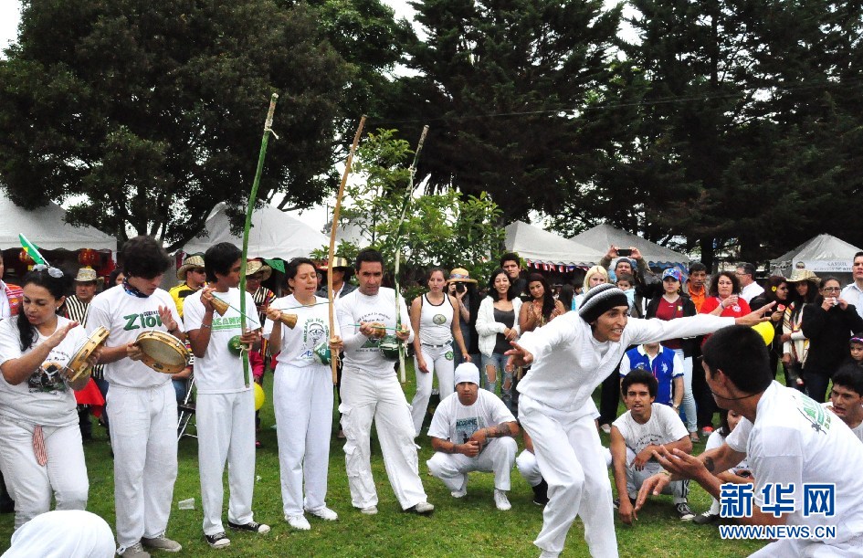 ????巴西青年表演了巴西傳統戰舞。(新華網記者 梁君茜 攝)
