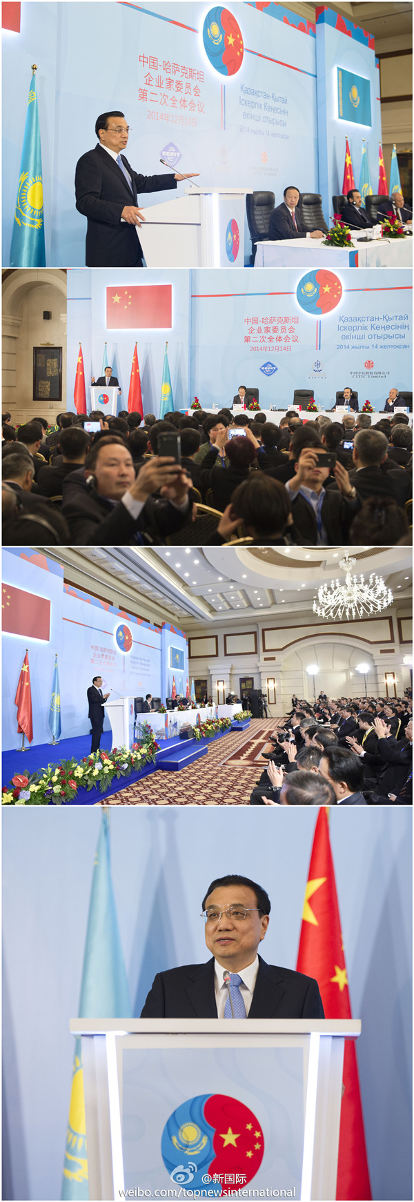 ????新華網北京12月15日電? 據新華社“新國際”微博報道,李克強總理14日在中哈企業家委員會第二次會議上說,中方愿參與哈薩克斯坦政府新近提出的“光明大道”計劃。這一新經濟計劃的重點是發展基礎設施,需要鋼鐵、水泥、平板玻璃、電廠等,中國在這些方面有很強的裝備制造能力,中方愿支持哈方,實現互利共贏。