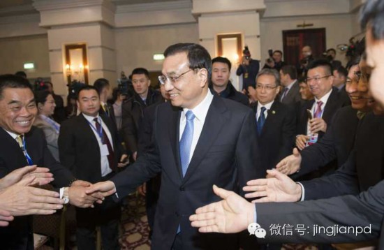 李克強(qiáng)參加中哈企業(yè)家委員會(huì)會(huì)議后,離開(kāi)會(huì)場(chǎng)時(shí)與企業(yè)家們握手