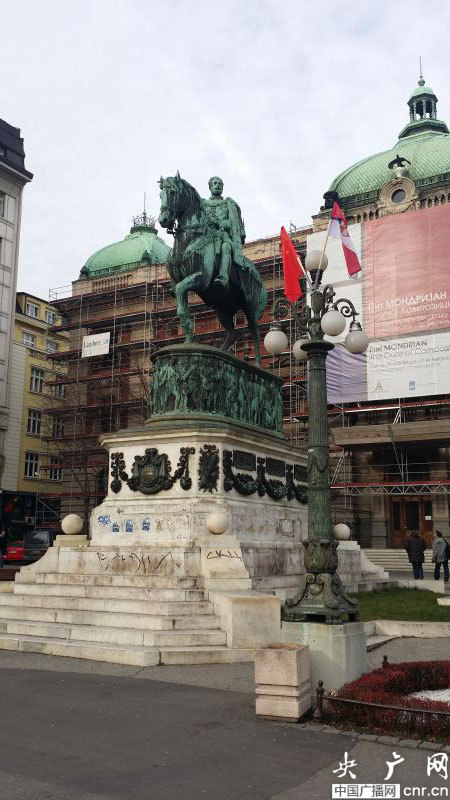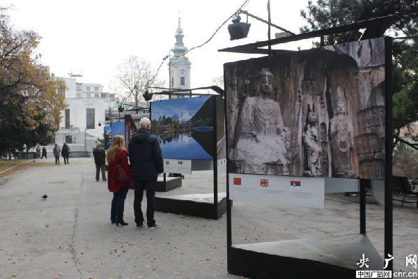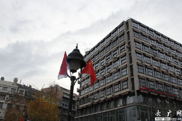 ??? 盡管人們穿著厚厚的外衣,但貝爾格萊德卻并不寒冷,更像是秋天剛剛來到。這兩天,無論是新城區(qū)還是傳統(tǒng)的舊城都紛紛出現(xiàn)了中國的色彩。舊城米哈伊洛大公街附近,幾條馬路都掛起了中塞兩國的國旗。卡萊梅格丹城堡還正在進行「世界遺產(chǎn)在中國」圖片展。最神奇的是,記者偶遇的一位老奶奶,得知記者come from China后,立刻用中文唱起了“我愛你中國”,瞬間親切了很多。