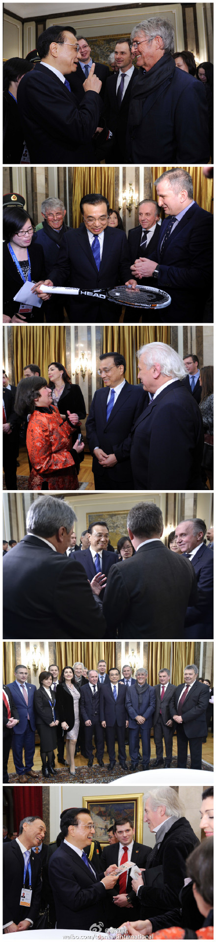 ??? 當(dāng)?shù)貢r(shí)間18日下午,李克強(qiáng)總理在塞爾維亞接受“貝爾格萊德榮譽(yù)市民”證書后,同在場的塞各界知名人士交流。他們既有為人熟知的電影演員、足球教練,也有歌劇表演藝術(shù)家和長期研究中國的漢學(xué)家??偫硗麄冇H切交談,現(xiàn)場氣氛友好熱烈。