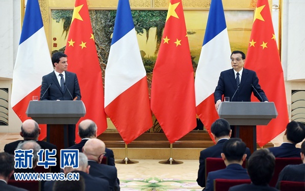 ????1月29日,中國國務院總理李克強在北京人民大會堂與法國總理瓦爾斯舉行會談后共同會見記者。 新華社記者 姚大偉 攝