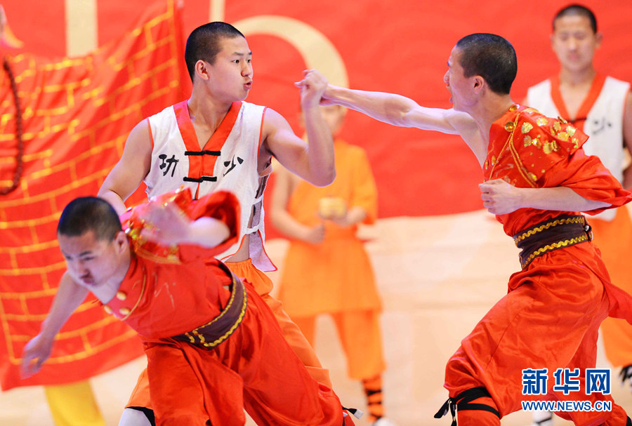 2月4日晚,在烏茲別克斯坦首都塔什干突厥宮,藝術(shù)家在表演中國武術(shù)和舞蹈。新華網(wǎng)記者 沙達(dá)提 攝