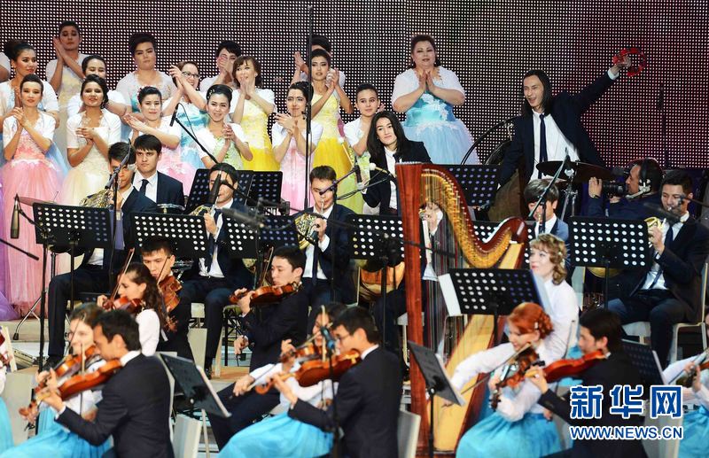 ????3月25日晚,烏茲別克斯坦首都塔什干“烏茲別克斯坦國際論壇宮”,由烏茲別克斯坦文化體育部等多個部門聯合組織舉辦的“春天交響曲”音樂晚會在首都塔什干“烏茲別克斯坦國際論壇宮”精彩上演,烏茲別克斯坦青年藝術家們向來自烏科學、文化、藝術和體育等各界人士代表、駐烏外國使節和國際組織代表以及前來參加烏總統選舉的國際和國內觀察員近2500余名觀眾獻上一場世界著名交響曲和烏茲別克斯坦傳統民族音樂融為一體的精彩音樂盛宴。新華網記者沙達提 攝