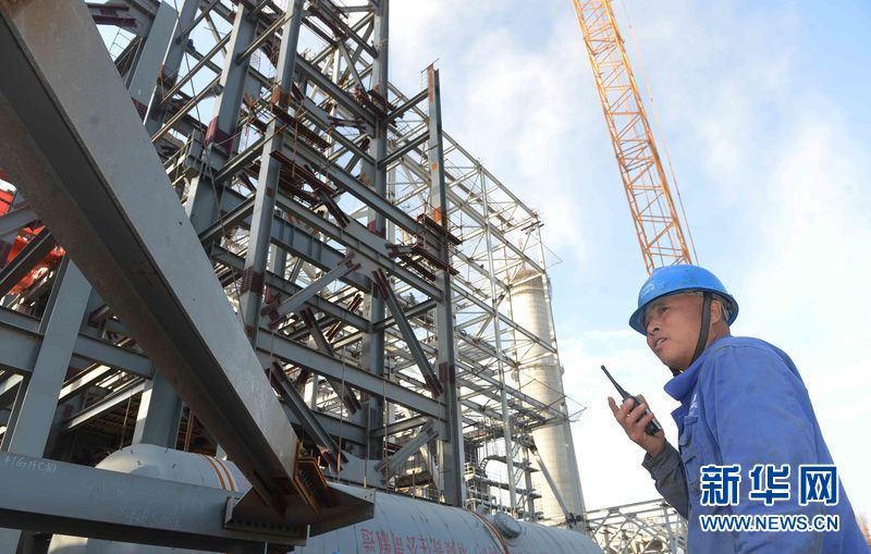 4月16日,烏茲別克斯坦安格連(市)電廠主廠房鋼結構施工現場。新華網發 記者沙達提 攝