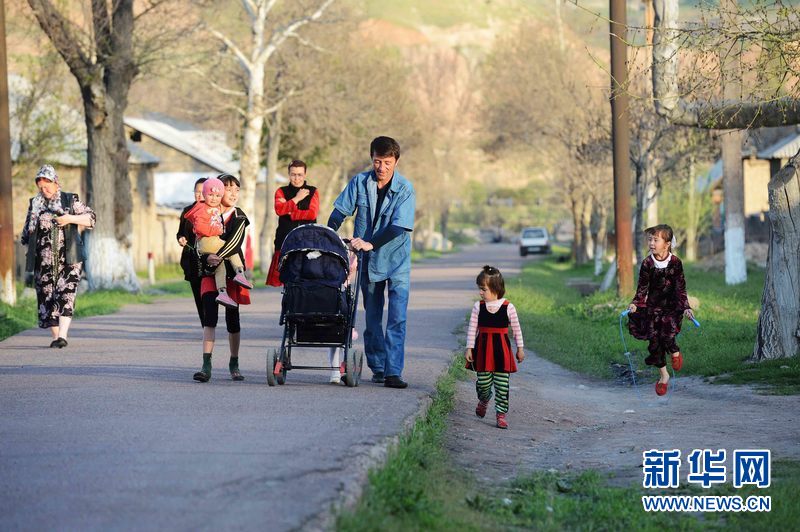 烏茲別克斯坦安格連(市)電廠附近,市民在散步。新華網發 記者沙達提 攝