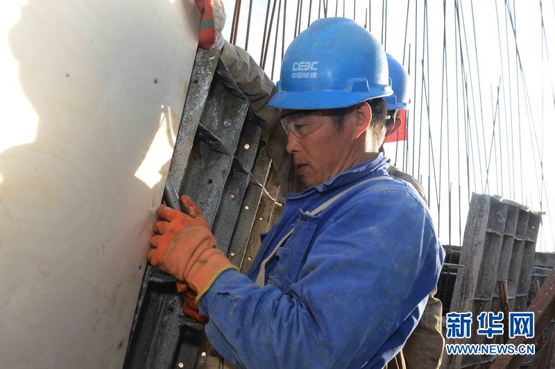 4月16日,烏茲別克斯坦安格連(市)電廠主廠房鋼結構施工現場。新華網發 記者沙達提 攝