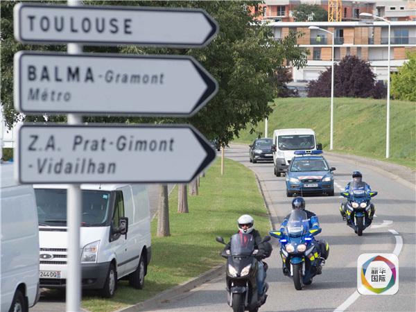圖為8月1日,在法國圖盧茲近郊,載有疑似馬航MH370航班殘骸的白色貨車駛入航空技術分析機構。新華社發