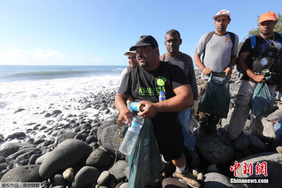 當地時間2015年8月10日,法屬留尼汪島,當地對海岸線展開搜索,繼續追蹤馬航MH370殘骸,發現了一個寫有中文字樣的礦泉水瓶子,以及以一名韓國歌手為原型的玩偶模型。