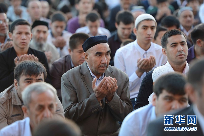 9月24日,在烏茲別克斯坦首都塔什干哈斯特·伊瑪姆建筑群清真寺廣場,人們參加古爾邦節禮拜。當天,烏茲別克斯坦各地慶祝伊斯蘭教傳統節日古爾邦節?!肮艩柊罟潯币喾Q“宰牲節”,是伊斯蘭教三大節日之一。 新華社記者沙達提 攝