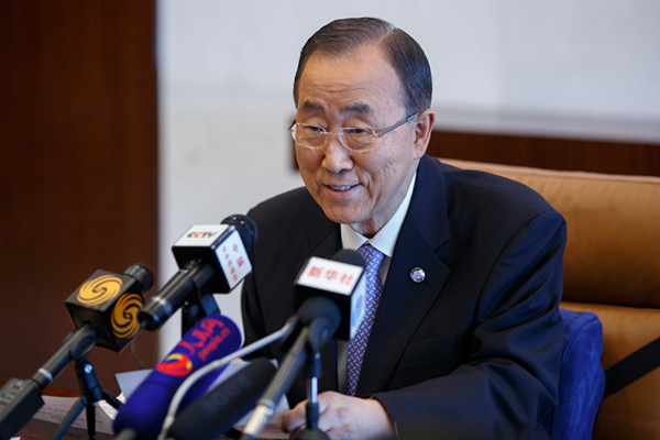 2015年8月28日,在紐約聯合國總部,聯合國秘書長潘基文接受中國媒體聯合采訪。(新華社記者 李木子 攝)