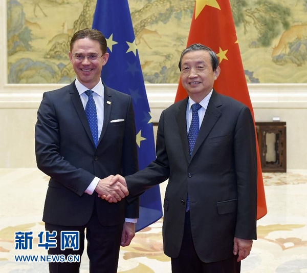馬凱表示,今年是中歐建交40周年,雙方要認真落實兩國領(lǐng)導人重要共識,共同深化全方位、多層次、寬領(lǐng)域互利合作,推動中歐全面戰(zhàn)略伙伴關(guān)系向前發(fā)展。當前,世界經(jīng)濟復蘇狀況依然錯綜復雜,中歐應加強宏觀政策溝通協(xié)調(diào),推動地區(qū)和全球經(jīng)濟持續(xù)穩(wěn)定增長。要找準“一帶一路”倡議和“歐洲投資計劃”契合點,加強國際產(chǎn)能合作,建設互聯(lián)互通基礎設施,并探索數(shù)字經(jīng)濟、網(wǎng)絡安全等合作新領(lǐng)域。中歐已從單向投資進入雙向投資新階段,中方期待早日達成高水平的中歐投資協(xié)定。