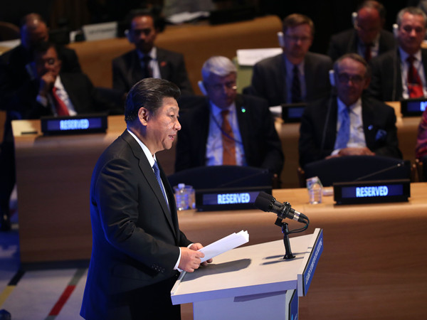 26日,在聯合國發展峰會上,習近平發表題為《謀共同永續發展 做合作共贏伙伴》的重要講話。