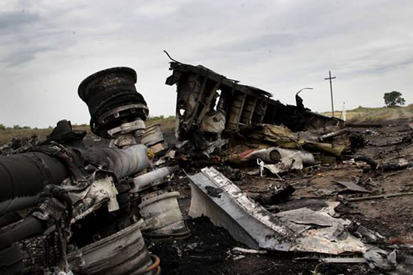 ↑2014年7月18日,在烏克蘭東部地區(qū)頓涅茨克州拍攝的失事客機殘骸。