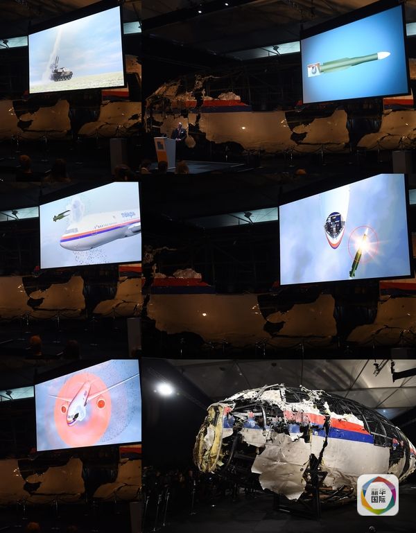 13日下午在海牙舉行的新聞發布會上,荷蘭調查人員展示了MH17航班前半截殘骸的重組。調查人員給在墜機現場尋獲的每塊殘骸編號、拍照、掃描、分組,在荷蘭南部的希爾澤-賴恩空軍基地部分還原了客機機鼻、駕駛艙和商務艙。