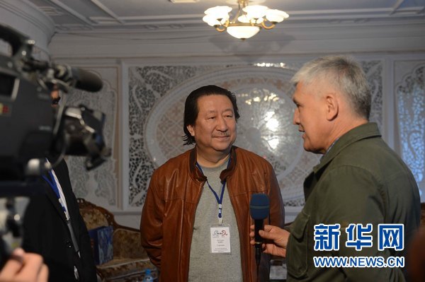 10月27日,烏茲別克斯坦首都塔什干,中國國家畫院院長楊曉陽在接受烏電視臺采訪。