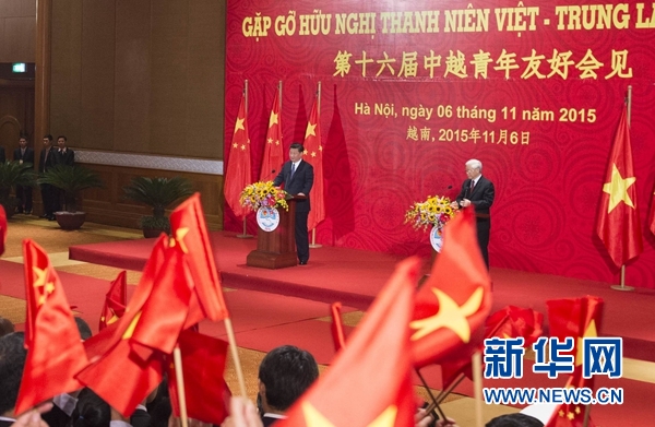 11月6日,中共中央總書記、國(guó)家主席習(xí)近平和越共中央總書記阮富仲在河內(nèi)共同會(huì)見參加第十六屆中越青年友好會(huì)見活動(dòng)的中越青年代表。新華社記者李學(xué)仁攝