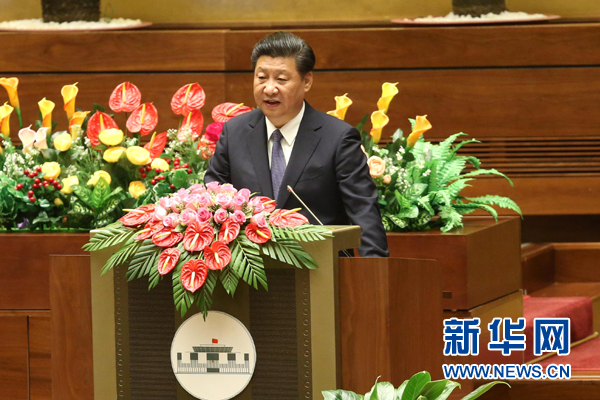 ???? 11月6日,中共中央總書記、國家主席習近平在越南國會發表題為《共同譜寫中越友好新篇章》的重要演講。 新華社記者 龐興雷 攝