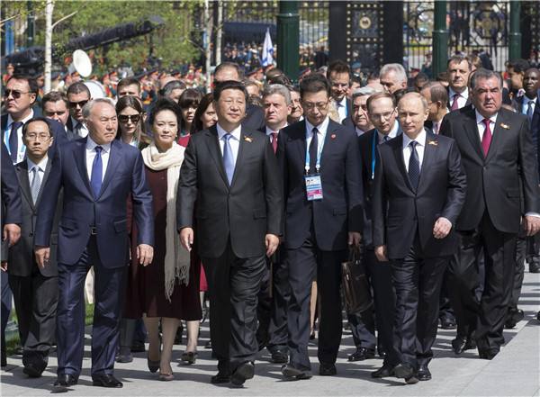 2015年5月8日,習(xí)近平抵達(dá)俄羅斯首都莫斯科,開始訪問(wèn)俄羅斯,并出席俄羅斯紀(jì)念衛(wèi)國(guó)戰(zhàn)爭(zhēng)勝利70周年慶典。