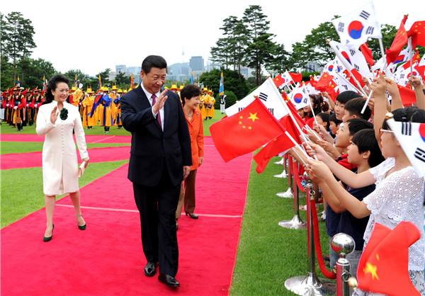 2014年7月3日,習(xí)近平抵達(dá)首爾,對(duì)韓國(guó)進(jìn)行國(guó)事訪問(wèn)。