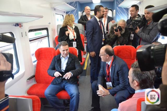 當天,馬其頓鐵路運輸公司為其從中國中車集團株洲電力機車有限公司采購的首列電力動車組舉行試運行儀式。格魯埃夫斯基等多名馬其頓政府高官、馬鐵路運輸公司總經理科斯托夫、中國駐馬其頓大使溫振順應邀出席儀式并試乘動車組。