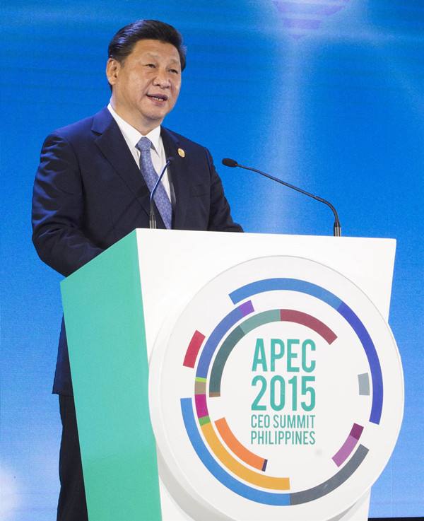 2015年11月18日,國家主席習近平在菲律賓馬尼拉出席亞太經合組織工商領導人峰會并發表主旨演講。