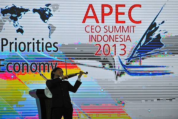 2013年10月6日,一名小提琴演奏家在印度尼西亞巴厘島舉行的2013APEC工商領導人峰會開幕式上演奏。