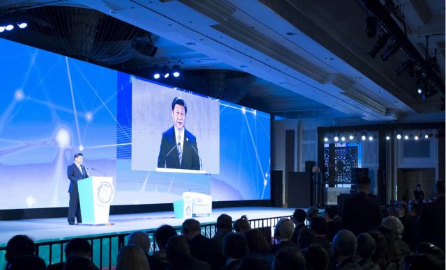 11月18日,國家主席習(xí)近平在菲律賓馬尼拉出席亞太經(jīng)合組織工商領(lǐng)導(dǎo)人峰會并發(fā)表主旨演講。(新華社記者李學(xué)仁攝)