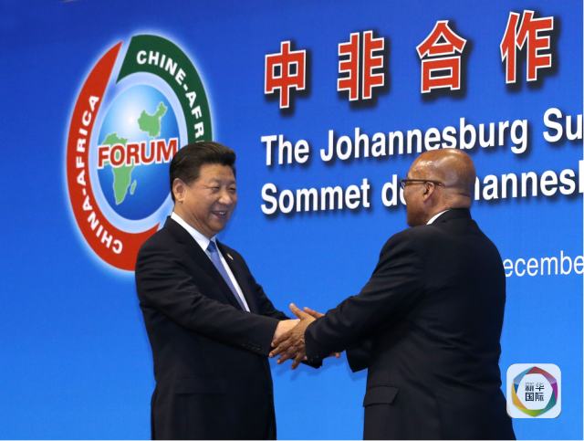 12月4日,國家主席習(xí)近平出席中非合作論壇約翰內(nèi)斯堡峰會(huì)開幕式并發(fā)表致辭。這是南非總統(tǒng)祖馬迎接習(xí)近平。(新華社記者龐興雷攝)