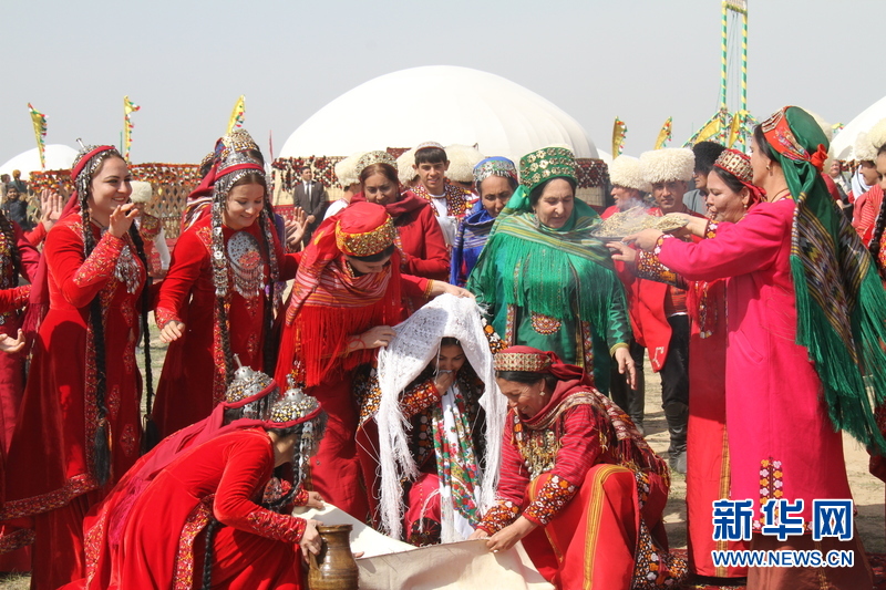 3月21日,在土庫曼斯坦首都阿什哈巴德,現(xiàn)場(chǎng)上演結(jié)婚場(chǎng)面。新華社記者盧敬利 攝
