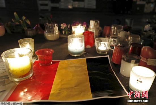 當地時間2016年3月22日,比利時布魯塞爾,民眾悼念恐怖襲擊遇難者。