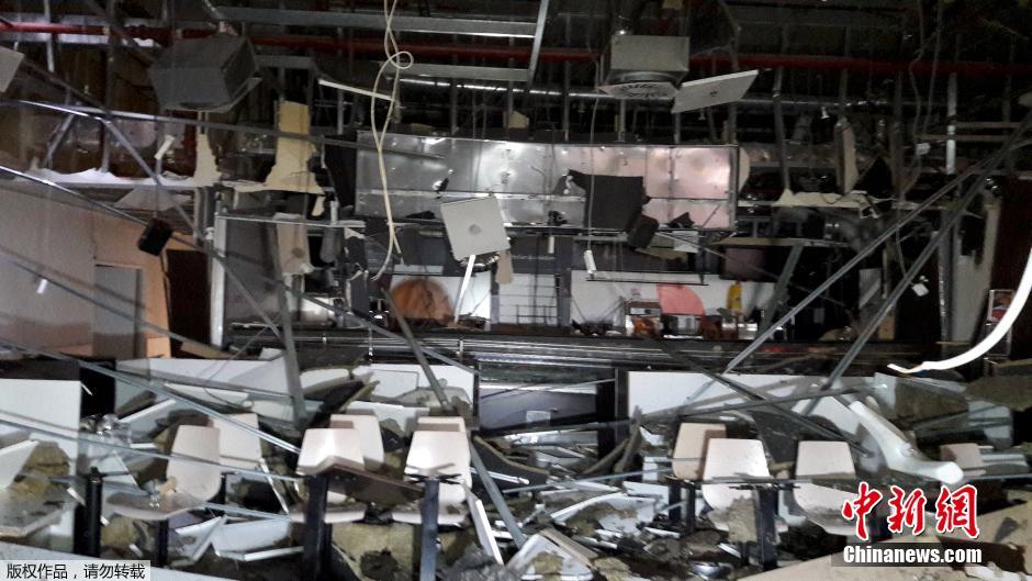 遭遇爆炸的地點,天花板的隔板全都散落下來。
