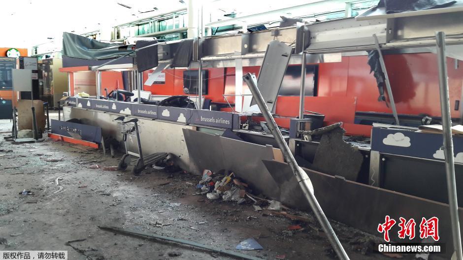 比利時遭恐襲機場內部曝光 爆炸過后一片狼藉(圖)
