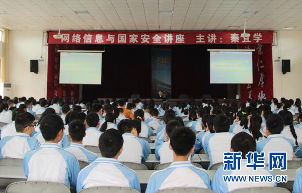 ????4月26日,國防科學技術大學秦宜學教授在四川省邛崍第一中學做《網絡信息與國家安全》講座。