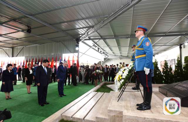 舊址上,又立起一塊新的黑色紀念碑,“緬懷烈士 珍愛和平”8個字莊嚴肅穆,落款“中華人民共和國2016年6月17日立”。紀念碑前,習主席肅立默哀,塞爾維亞總統、議長、總理及全體內閣成員參加憑吊。