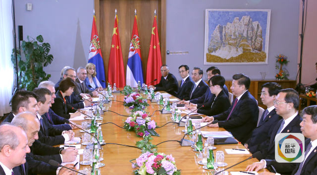 6月18日,國家主席習近平在貝爾格萊德同塞爾維亞總統尼科利奇舉行會談。新華社記者馬占成攝