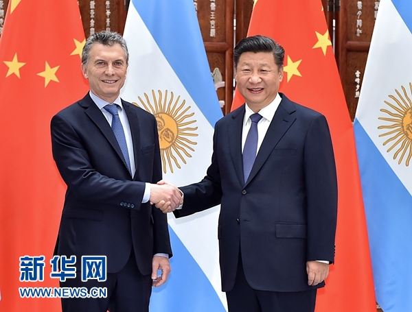 9月3日,國家主席習近平在杭州會見前來出席二十國集團領導人杭州峰會的阿根廷總統(tǒng)馬克里。 新華社記者 李濤 攝